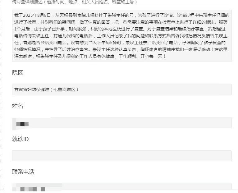 您们用实际行动诠释了何为医者仁心,何为责任与温度。从初次问诊时细致入微的检查、不厌其烦的解答,到在检查单上留下详尽的笔迹,每一个细节都体现了您极高的专业素养和对患者极端负责的精神。我们看到了全体医护工作者“以患者为中心”的崇高精神。您们不仅用精湛的医术守护健康,更用无私的爱心温暖人心。这份超越职责本身的付出,值得我们最高的赞誉。